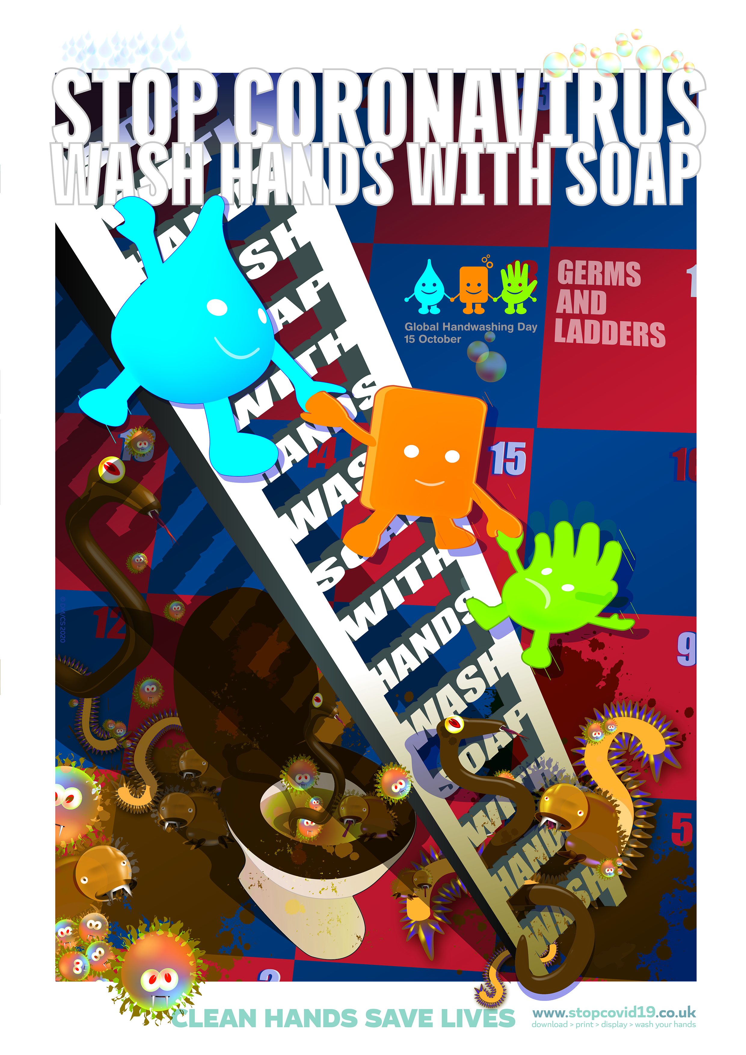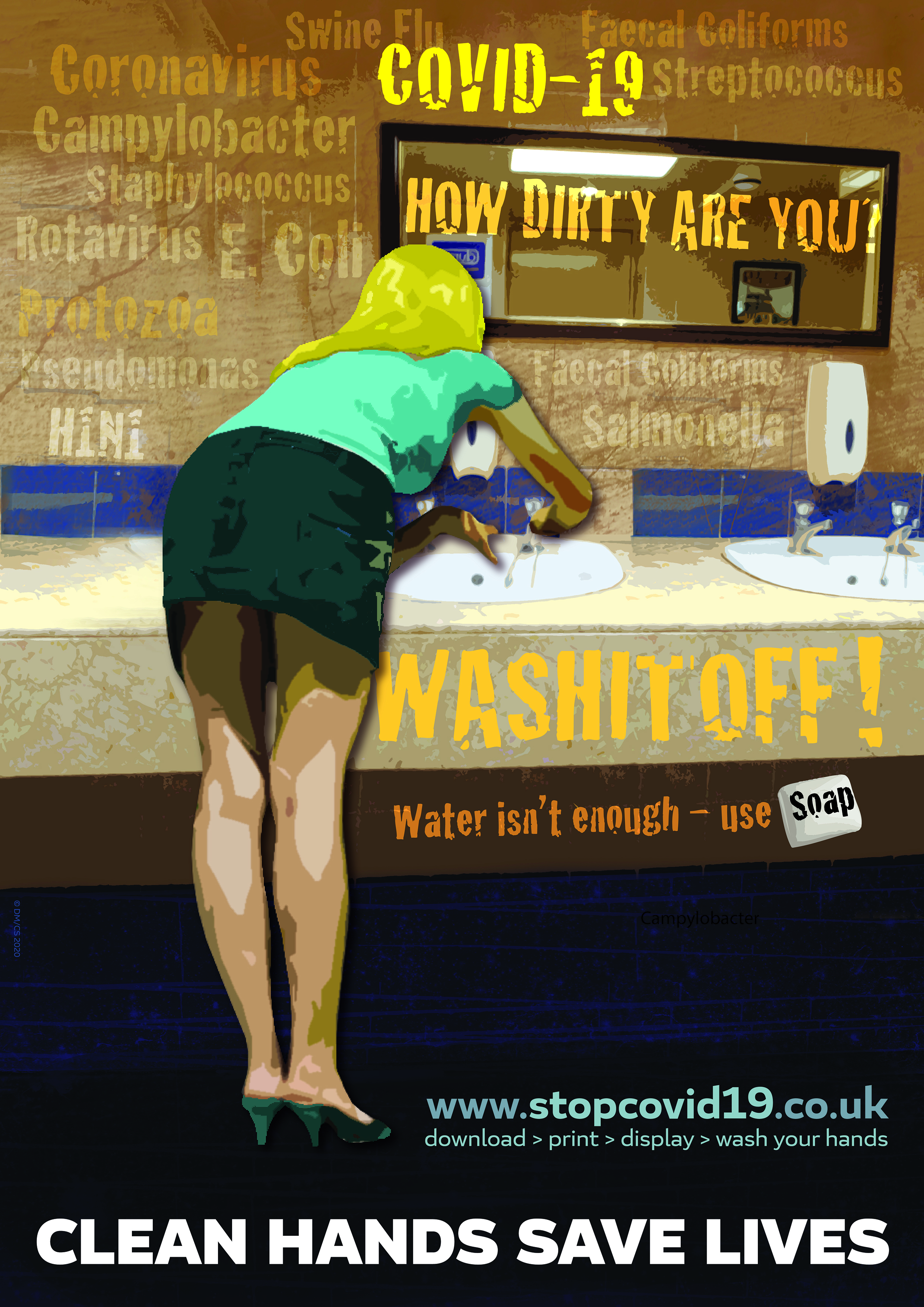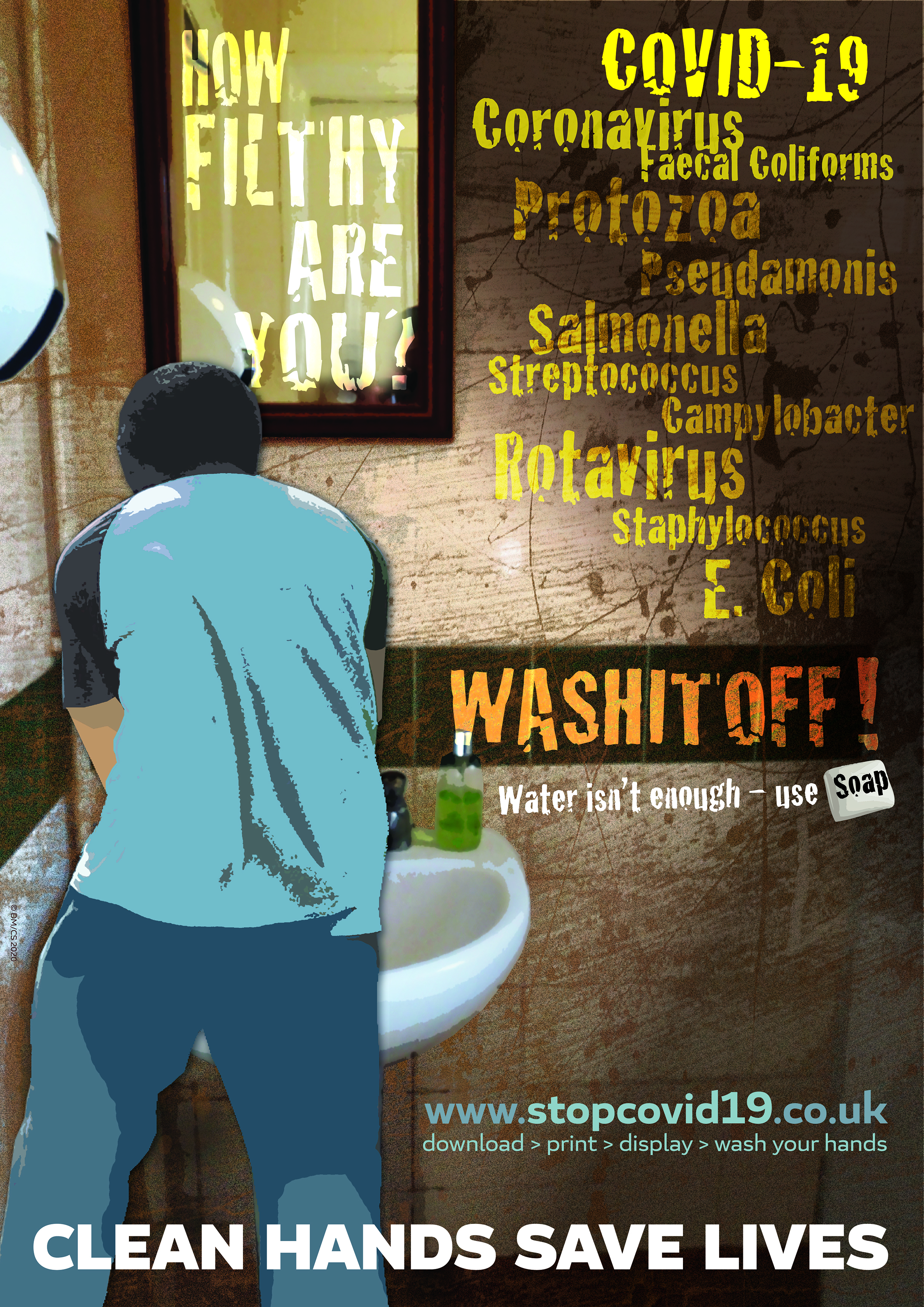Posters free to download – print – display in your home, workplace, toilets and washrooms, pub, club, bar to prompt regular and thorough hand washing.